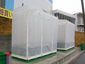 中サイズ・大サイズのプランターには、写真のようにビニールシートをセットすることが出来ます。冬場の冷たい雨や雪、霜から野菜を守ることはもちろん、温室効果で野菜の成長も比較的良くなります♪